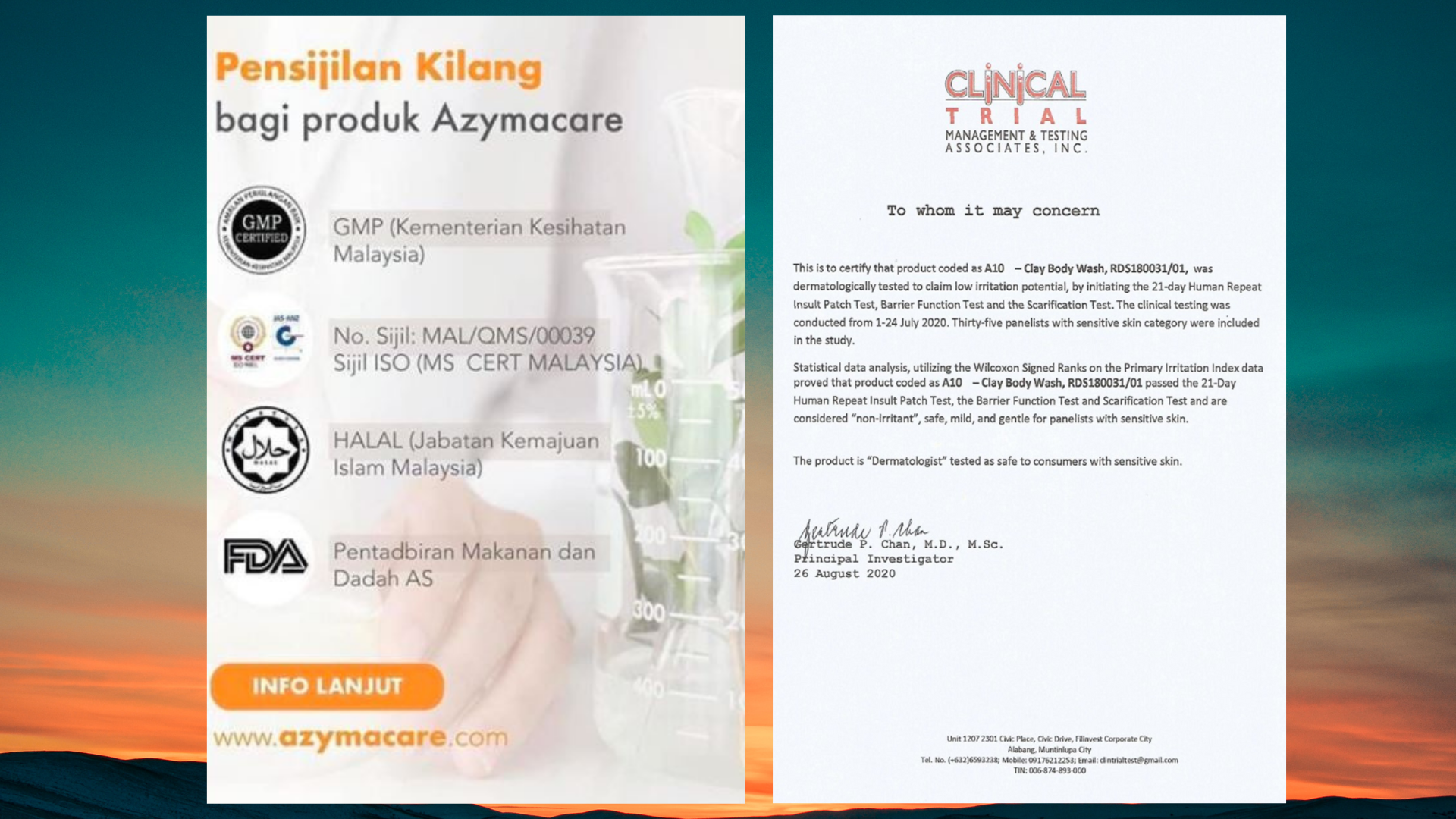 Mandian Tanah Liat Azymacare telah diuji oleh pakar kulit dan ianya sesuai untuk semua jenis kulit termasuk kulit sensitif